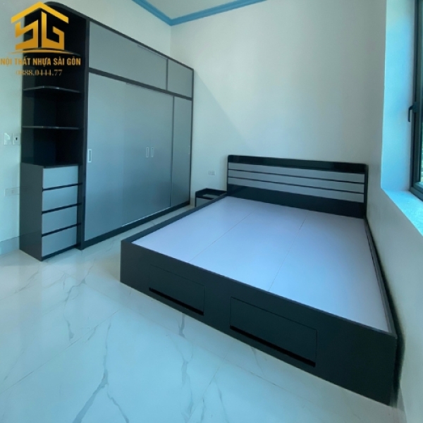 • Giường nhựa cao cấp: Thiết kế chắc chắn, tích hợp hộc kéo thông minh.