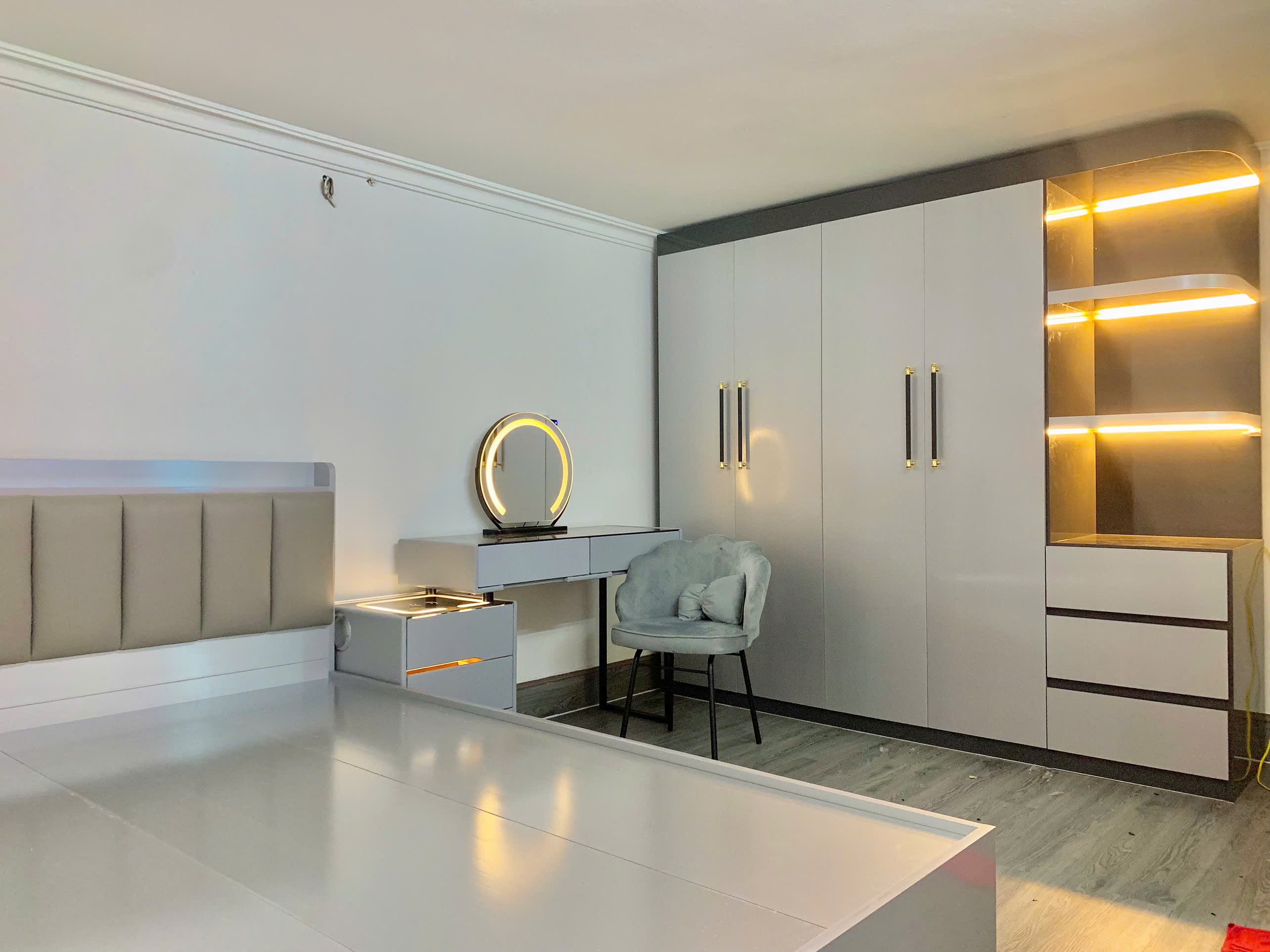 Thường thì, với một phòng ngủ dành cho 2 người, bạn chỉ nên mua một tủ quần áo có kích thước phù hợp và một giường ngủ với chiều rộng và chiều dài tương xứng với không gian. Ngoài ra, kích thước của cánh cửa phòng ngủ cũng không nên quá lớn, vì điều này có thể làm mất đi sự cân đối của căn phòng.