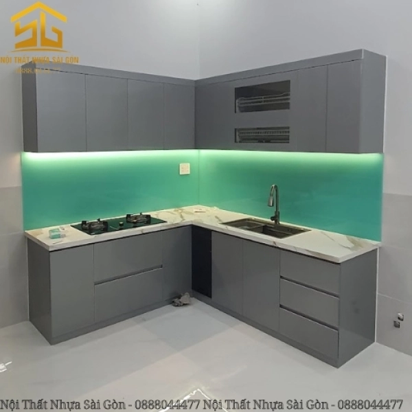 Tủ Bếp Nhựa Màu Xám Sang Trọng