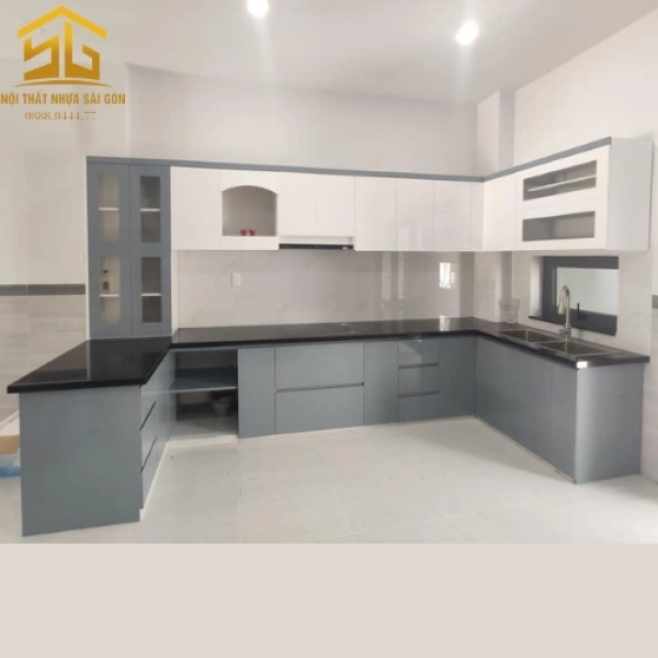 Tủ Bếp Nhựa Màu Xám Sang Trọng