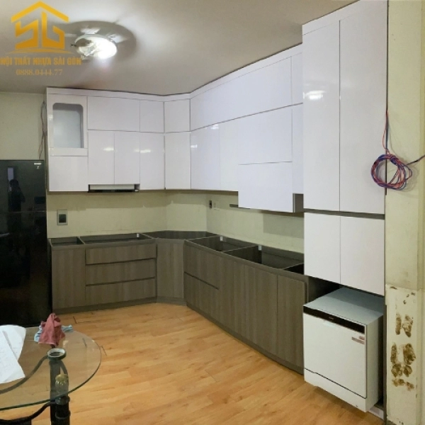 Tủ Bếp Nhựa Màu Xám Sang Trọng