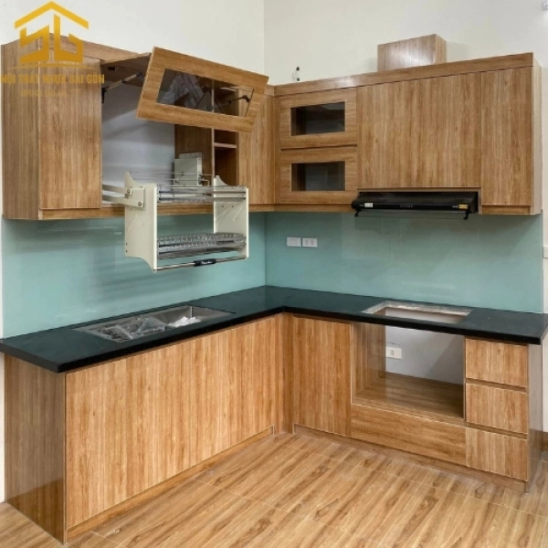 • Tối ưu không gian: Ngăn chứa rộng rãi, tích hợp phụ kiện thông minh như giá bát, bếp từ.