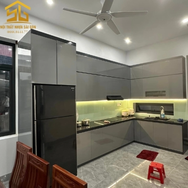 Tủ Bếp Nhựa Màu Xám Sang Trọng