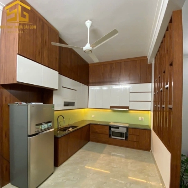 Tủ Bếp Nhựa Zukoplast vân gỗ phối trắng sang trọng