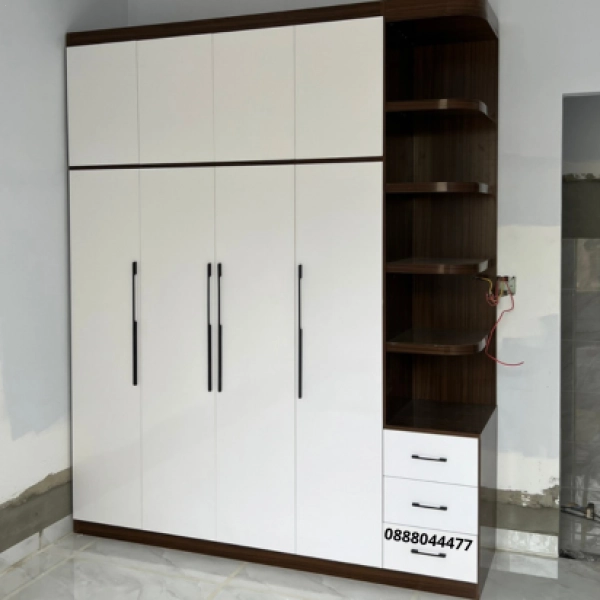 Mẫu tủ nhựa Đài Loan cao cấp 4 cánh là sự kết hợp hoàn hảo giữa màu trắng bóng hiện đại và vân gỗ trầm ấm, mang đến nét đẹp sang trọng, đẳng cấp cho không gian phòng ngủ. Thiết kế liền kệ trang trí bo góc cong mềm mại, giúp tận dụng tối đa diện tích và tăng tính thẩm mỹ.