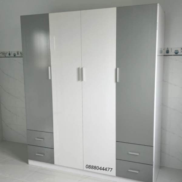 Tủ Quần Áo Nhựa Đài Loan 4 Cánh Màu Trắng – Xám | Thiết Kế Hiện Đại – Giá Cực Tốt